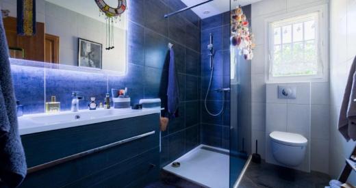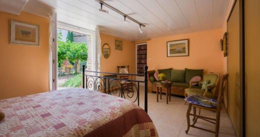 En rez de jardin : une chambre et salle d'eau, pour accueillir des hôtes ou pour une chambre indépendante du reste de la maison.
