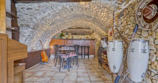 Elle compte également un salon bar voûté en pierres apparentes avec point d'eau et accès individuel.